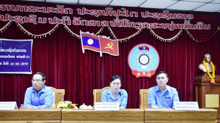 ກອງປະຊຸມໃຫຍ່ຄັ້ງທີ III ຂອງຄະນະກຳມະບານຮາກຖານທະນາຄານນະໂຍບາຍ (ທນບ) ໄດ້ສໍາເລັດລົງວັນທີ 24 ພຶດສະພາ 2019 ພາຍໃຕ້ການເປັນປະ ທານຂອງສະຫາຍ ແສງຈັນ ແກ້ວສ່ອງແສງ ປະທານຄະນະກຳມະບານຮາກຖານ ທນບ ໂດຍການໃຫ້ກຽດເຂົ້າຮ່ວມຂອງສະຫາຍນາງ ຂັນແກ້ວ ຫຼ້າມະນີເງົາ ກໍາມະການຄະນະພັກທະນາຄານແຫ່ງ ສປປ ລາວ (ທຫລ), ປະທານສະຫະພັນ ກໍາມະບານ ທຫລ,
