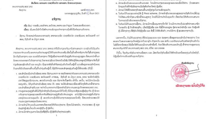 ແຈ້ງການເພີ່ມທະວີເອົາໃຈໃສ່ຕ້ານການເຮັດທຸລະກໍາທາງການເງິນທີ່ບໍ່ຖືກຕ້ອງກັບກົດໝາຍ
